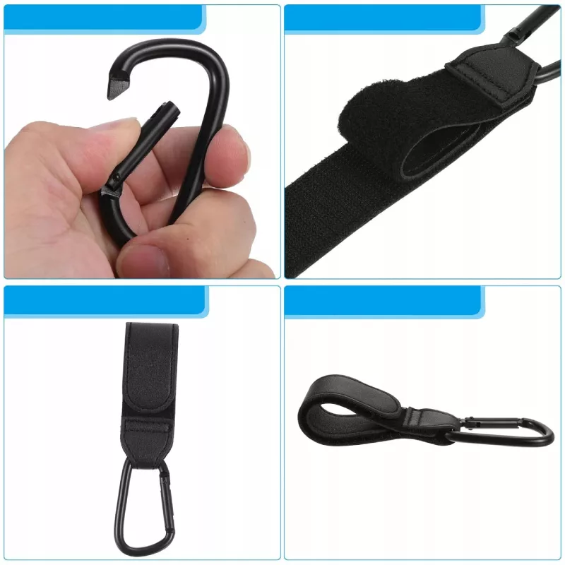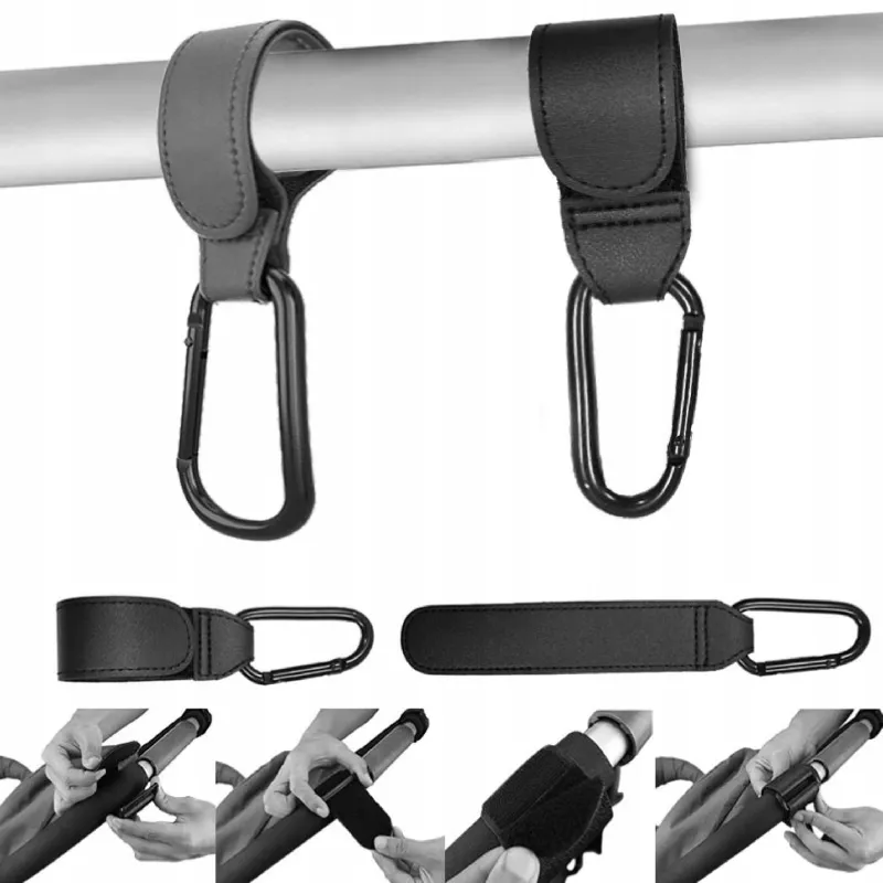 Uniwersalny zestaw 2 zaczepów do wózka dziecięcego mocny, elegancki i łatwy w użyciu – pozwala wieszać torby, torebki, torby na zakupy czy butelki, utrzymując porządek i komfort podczas spacerów. Idealny dla rodziców aktywnych, osób robiących zakupy i wszystkich, którzy cenią wygodę w codziennym życiu.