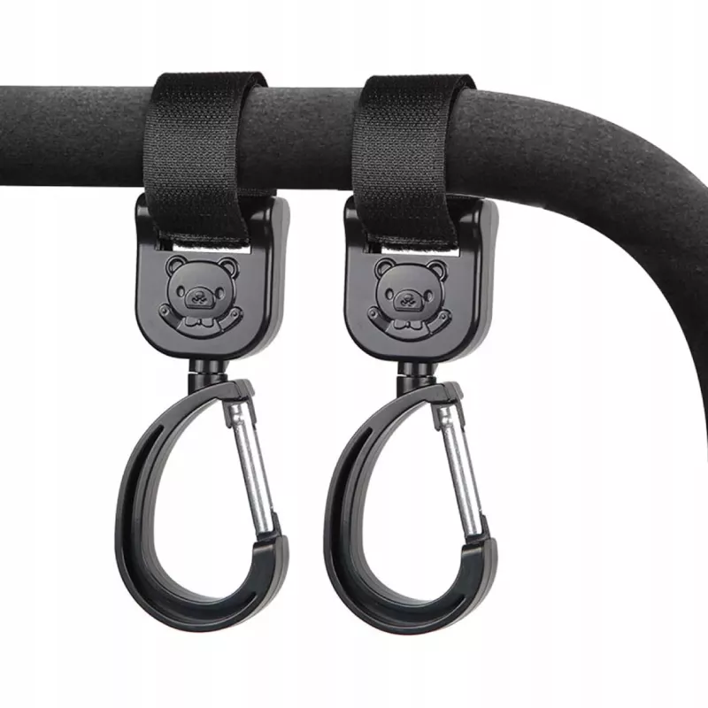 Uniwersalny zestaw 2 zaczepów do wózka dziecięcego mocny, elegancki i łatwy w użyciu – pozwala wieszać torby, torebki, torby na zakupy czy butelki, utrzymując porządek i komfort podczas spacerów. Idealny dla rodziców aktywnych, osób robiących zakupy i wszystkich, którzy cenią wygodę w codziennym życiu.