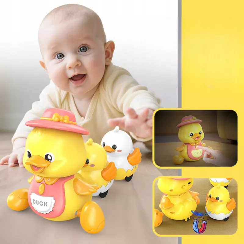 Interaktywna kaczuszka do raczkowania to doskonała zabawka edukacyjna wspierająca rozwój dziecka w kluczowym etapie nauki poruszania się. Dzięki efektom świetlnym, muzyce oraz inteligentnemu systemowi reagowania na ruch, maluch z chęcią podąża za zabawką, ćwicząc koordynację, równowagę oraz orientację przestrzenną.
