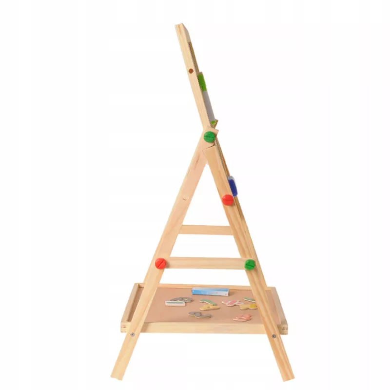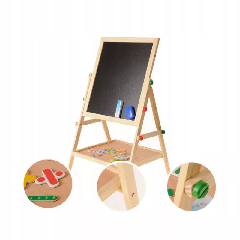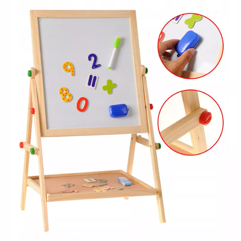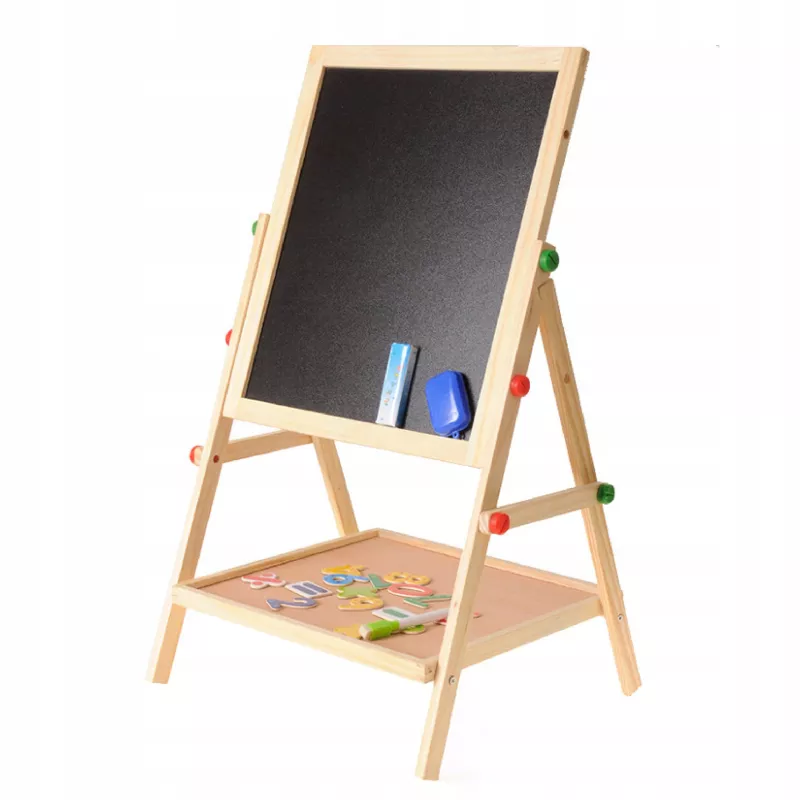 Podaruj dziecku przestrzeń do kreatywnej zabawy i nauki poprzez malowanie dzięki dwustronnej drewnianej tablicy 2w1. Ta tablica stojąca jest wykonana z wysokiej jakości drewna sosnowego, co gwarantuje stabilność i trwałość przez długie lata. Idealna dla dzieci od 3. roku życia, umożliwia rysowanie, malowanie i odkrywanie różnych technik artystycznych w domu i w przedszkolu.