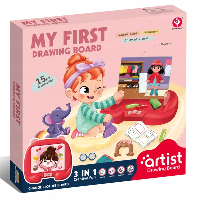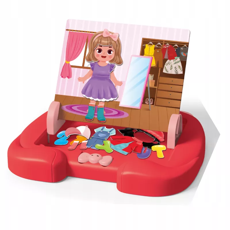 Kolorowa grafika z mody ubranek garderoby przyciąga uwagę dziecka i zachęca do nauki poprzez tematykę bliską jego zainteresowaniom. Motyw moda wspiera: