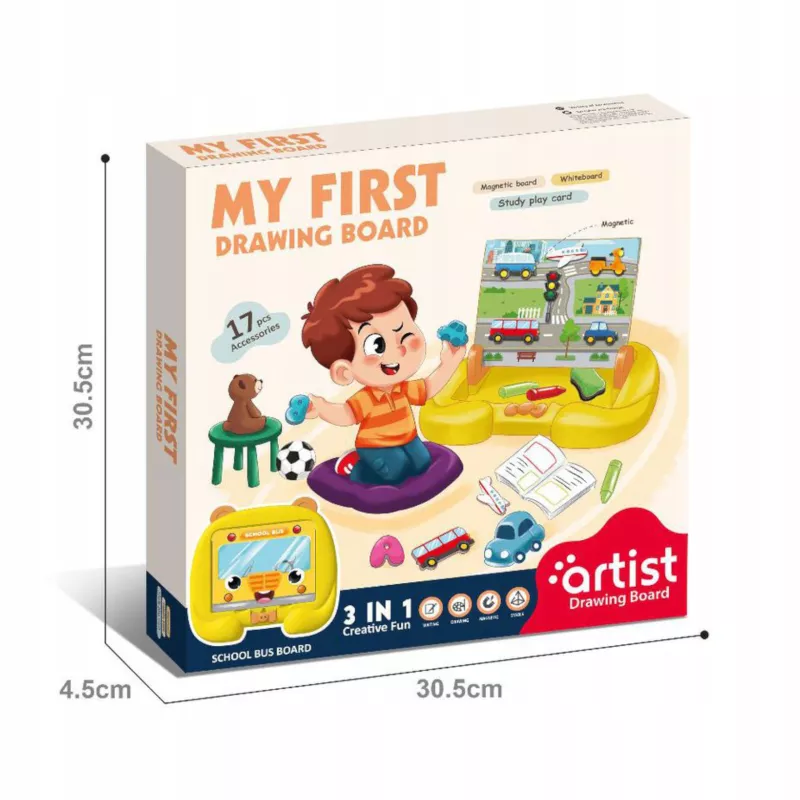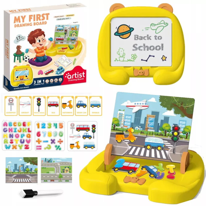 Edukacyjna tablica magnetyczna z motywem środków transportu to funkcjonalne narzędzie wspierające naukę i rozwój dziecka poprzez zabawę. Łączy w sobie funkcję tablicy magnetycznej oraz suchościeralnej, dzięki czemu oferuje szerokie możliwości edukacyjne w domu, przedszkolu i szkole.
