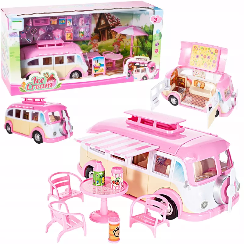 Szukasz zabawki, która łączy kreatywną zabawę, mobilną przygodę i uroczy design? Kamper Lodziarnia ICE Cream Camper to idealny wybór dla dzieci od 3 roku życia, które kochają odgrywanie ról, wakacyjne klimaty i zabawę lalkami. Ten różowo-biały samochód kempingowy z łatwością zamienia się w pełni wyposażony food truck z lodami, tworząc nieskończone scenariusze zabawy.