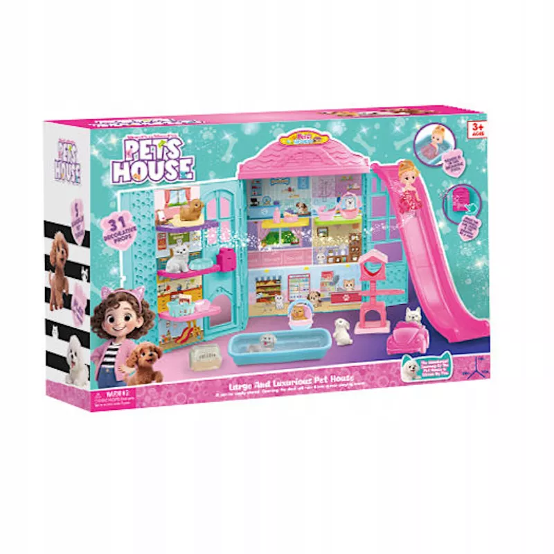 Kolorowy, wyposażony, z efektowną różową zjeżdżalnią i otwieranymi drzwiami – zapewnia godziny kreatywnej zabawy bez nudy. To idealny pomysł na prezent, który rozwija wyobraźnię, uczy opieki i wspiera rozwój społeczny dziecka