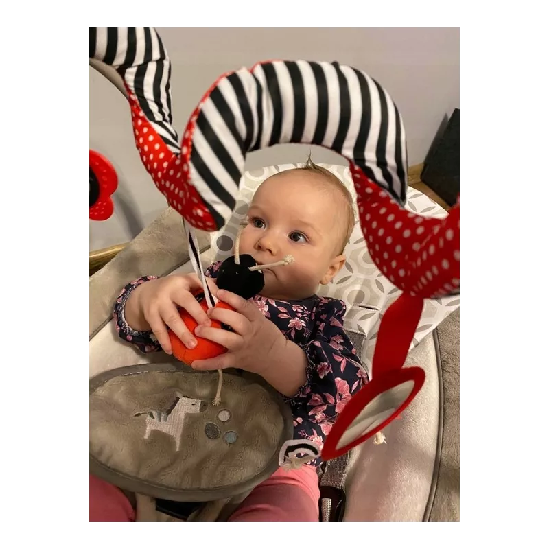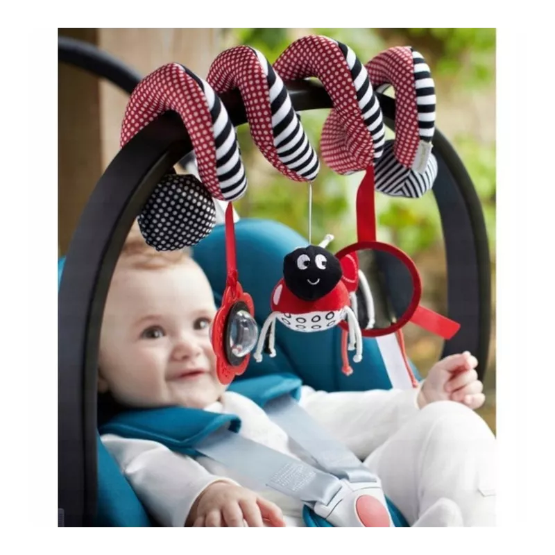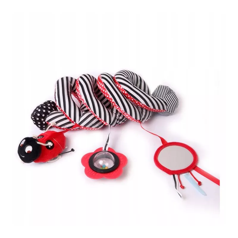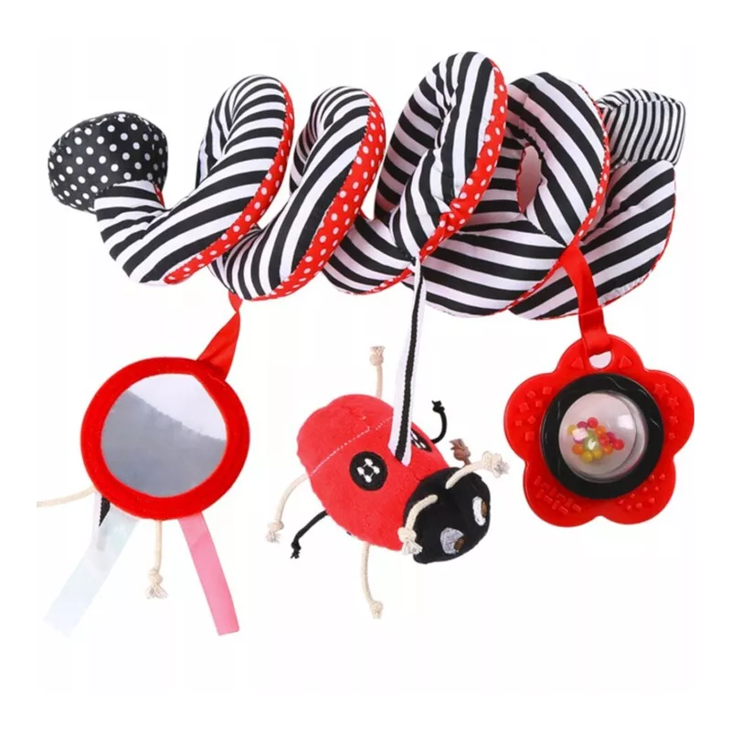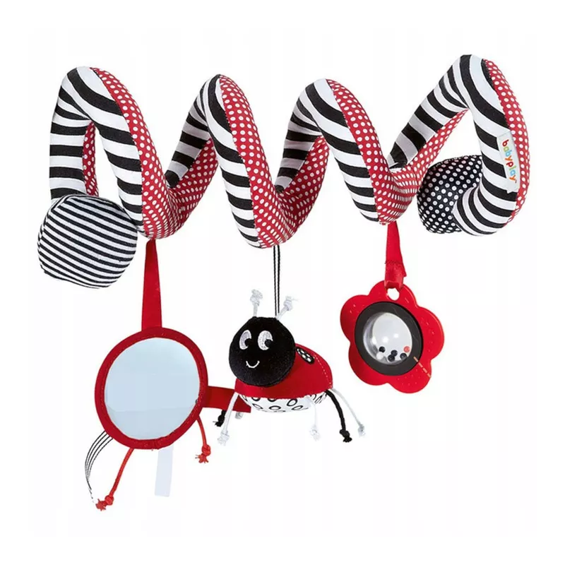Tuż po urodzeniu niemowlę nie rozróżnia jeszcze kolorów, dziecko widzi jedynie kontrastowe zestawienia bieli i czerni. Z biegiem dni to się zmienia, bo niemowlę zaczyna powoli odróżniać inne barwy. Dziecko w wieku niespełna miesiąca umie już zatrzymać na chwilę wzrok na jaskrawoczerwonej zabawce, którą rodzic przesuwa mu przed oczami. Patrząc na te fakty jasną sprawą jest, że pierwszą zabawką Twojego dziecka musi być kontrastowa spirala w powyższych kolorach, którą możesz zawiesić w wózku, w foteliku samochodowym, na łóżeczku.