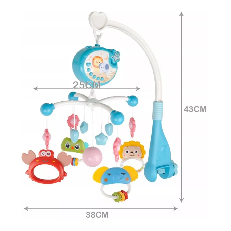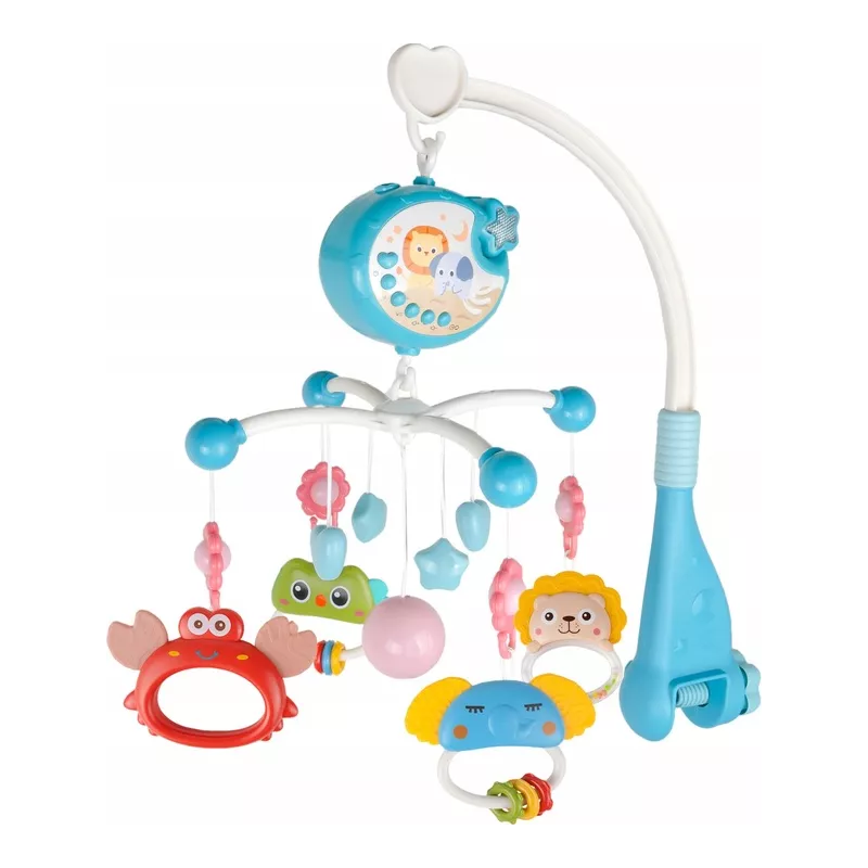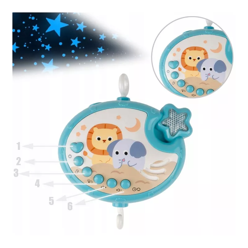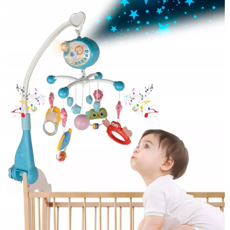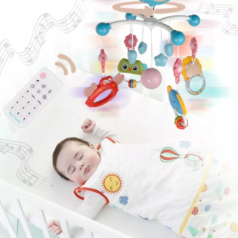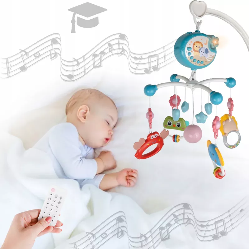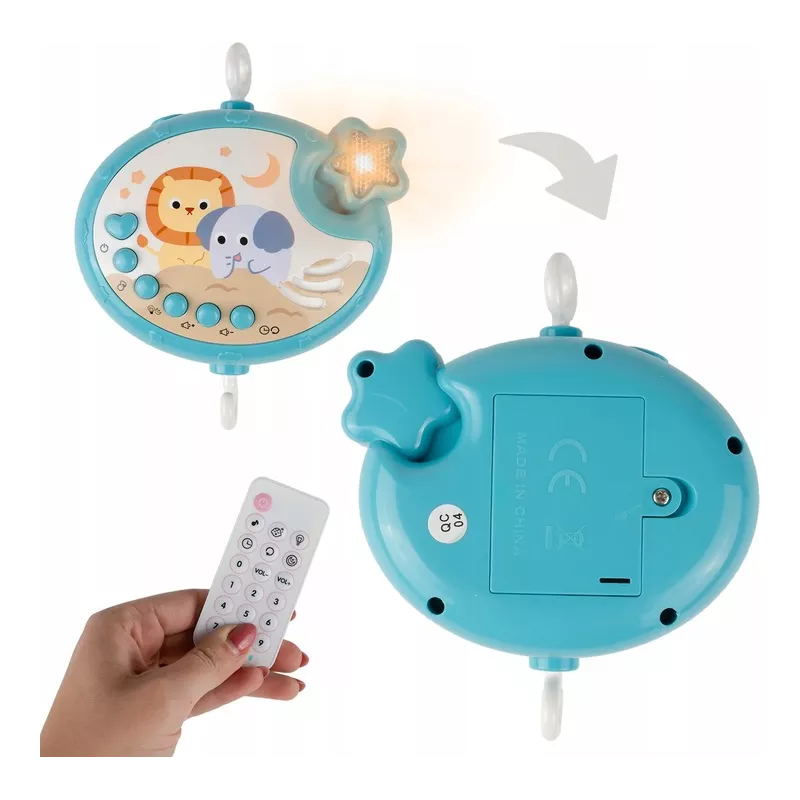 Karuzelka, która naprawdę uspokaja i zajmuje dziecko. Obraca się o 360°, gra delikatne melodie, świeci i wyświetla obrazek projektorem. Dzięki pilotowi możesz ją włączyć, wyłączyć albo zmienić melodię na odległość, a timer sprawi, że sama się wyłączy po 20, 40 lub 60 minutach. Idealna, gdy maluch nie lubi leżeć sam w łóżeczku albo potrzebuje wyciszenia przed snem.