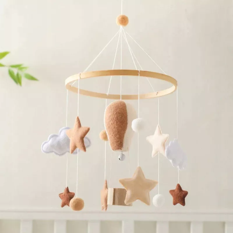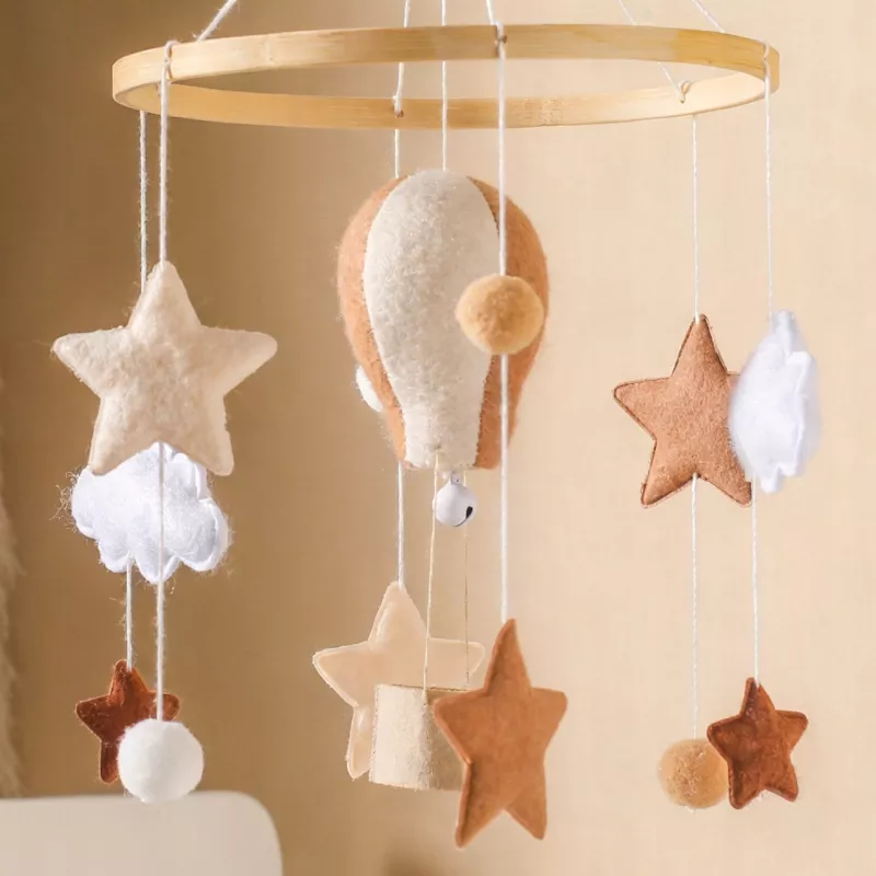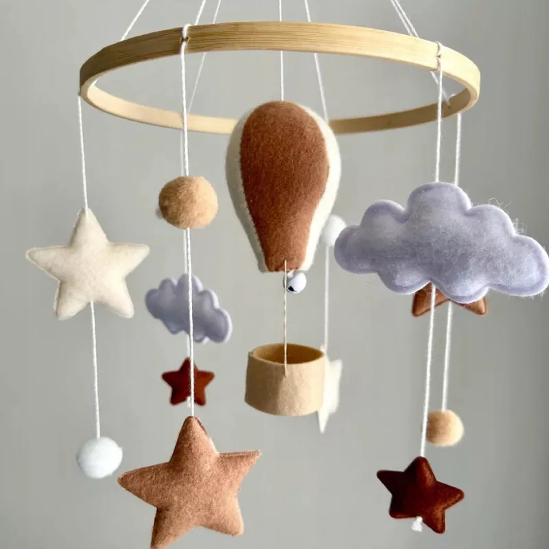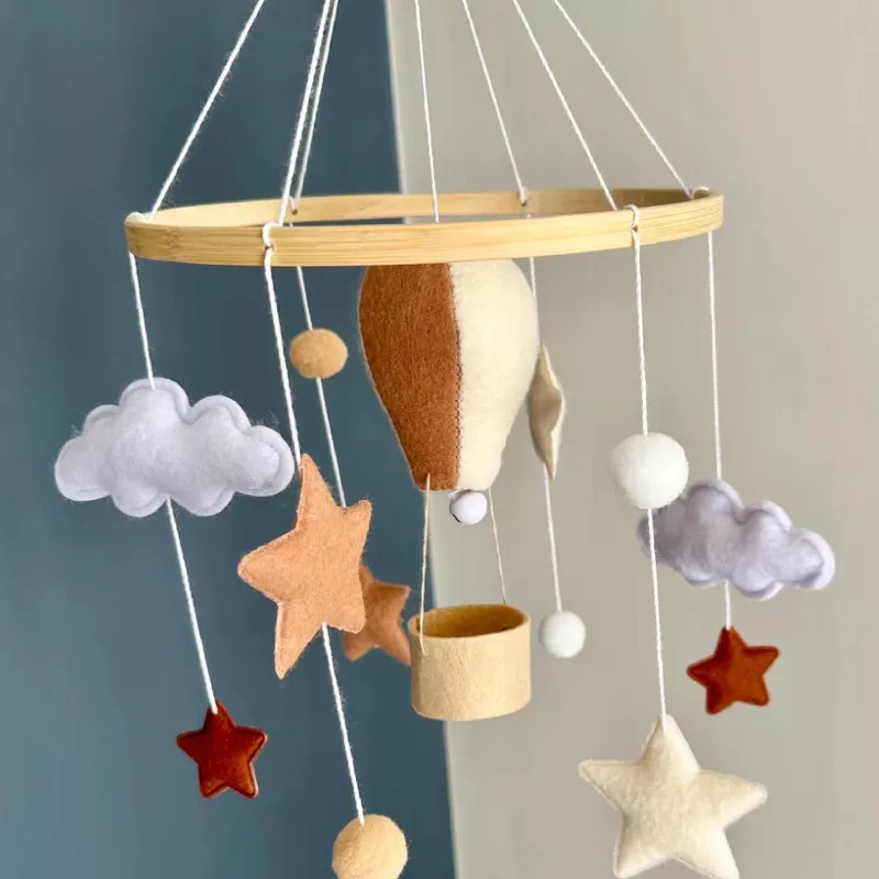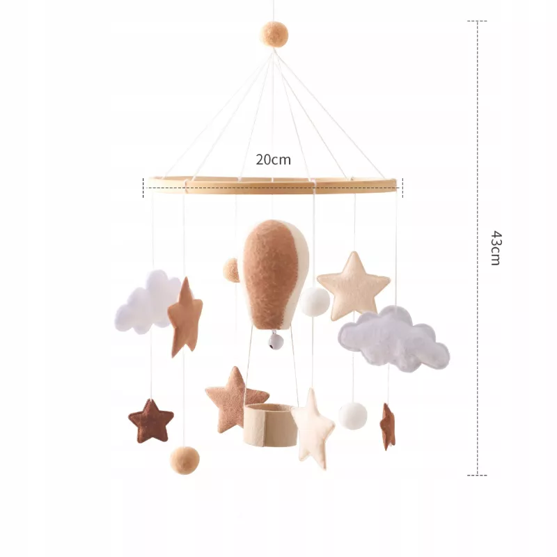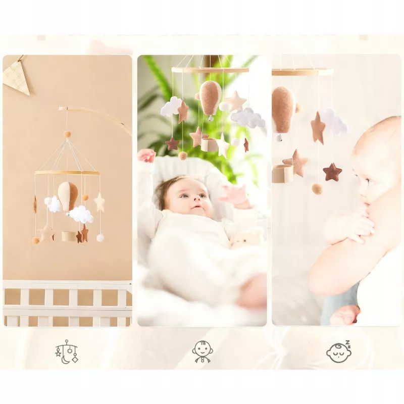 Produkt idealnie sprawdzi się zawieszony nad łóżeczkiem, przewijakiem lub w kąciku zabaw, tworząc spokojną i przytulną atmosferę sprzyjającą wyciszeniu i zasypianiu.