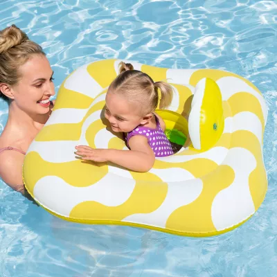 Fotelik do pływania sprawdzi się doskonale zarówno w basenie, jak i nad morzem czy jeziorem, ale także w przydomowym basenie w letnie dni. Kwadratowa budowa fotelika zapewnia dobrą wyporność i stabilność, dzięki czemu dziecko utrzymuje się równowagę i bezpiecznie unosi się na wodzie. Dodatkowym zabezpieczeniem maluszka są majteczki, które utrzymują dziecko i nie pozwalają na wywrócenie się. Nadmuchiwane kółko jest także wyposażone w specjalne zawory uniemożliwiające przypadkowe spuszczę nie powietrza. Żywe kolory przyciągają uwagę dziecka i zachęcają do spędzania czasu w wodzie. Fotelik dmuchany jest idealny dla rodziców ceniących bezpieczeństwo i wygodę maluszka podczas pierwszych chwil w wodzie.