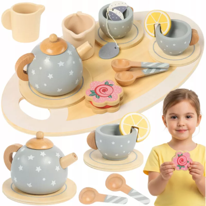 Twoje dziecko lubi „robić herbatkę” jak mama? Ten drewniany serwis daje mu gotową scenę do zabawy w dom, przyjęcie dla misiów albo podwieczorek z lalkami. Wszystko jest w komplecie, więc od razu po rozpakowaniu można zaprosić gości.
