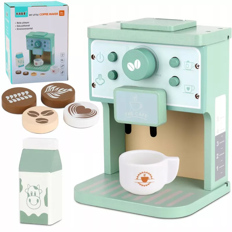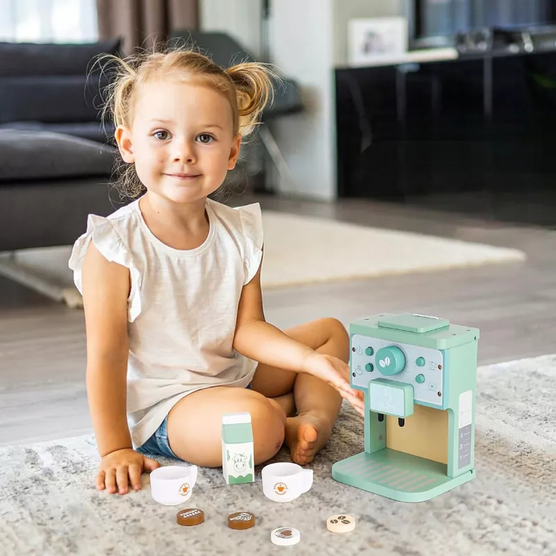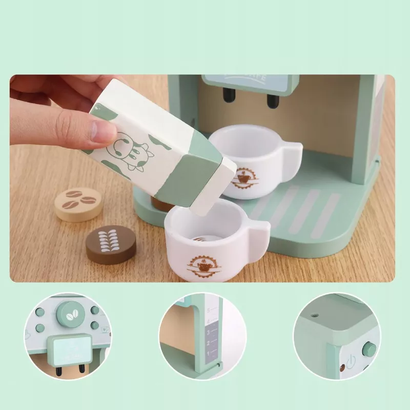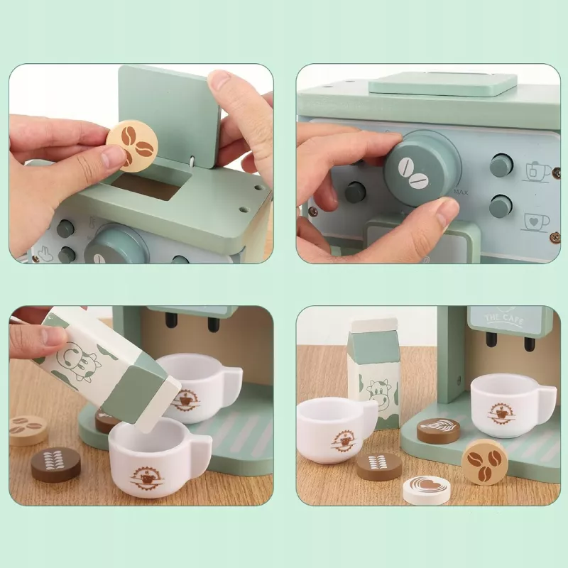 Drewniany Ekspres do Kawy dla Dzieci z akcesoriami to must-have dla małych miłośników zabawy w dom, sklep, restaurację czy kawiarenkę.