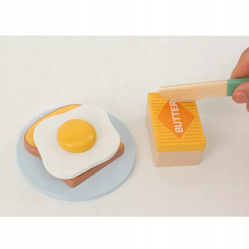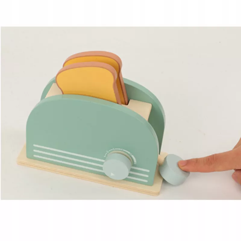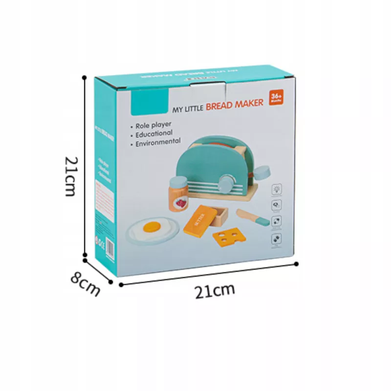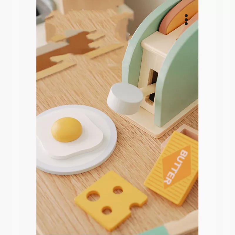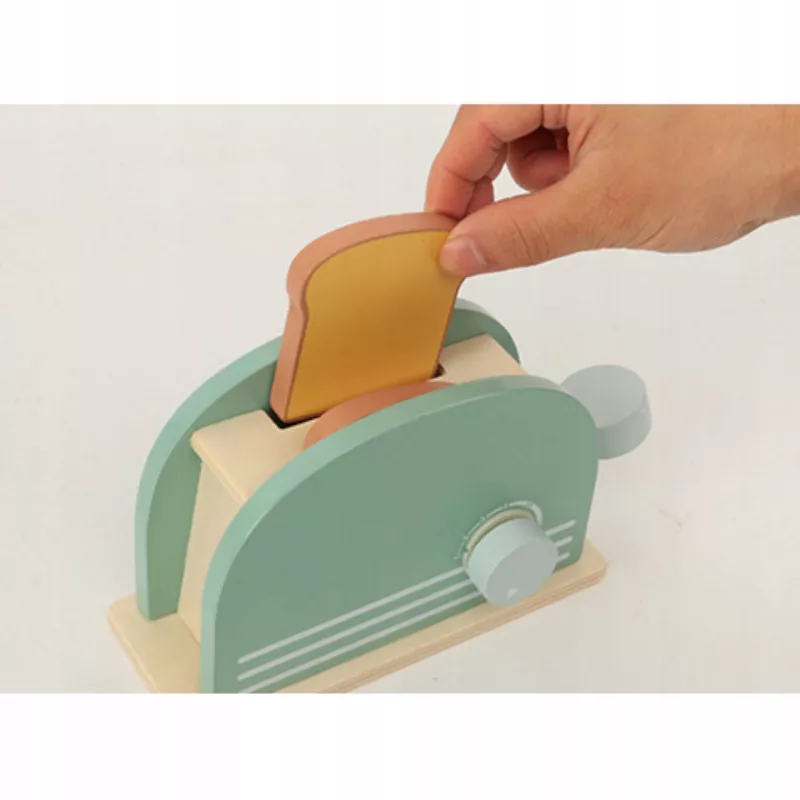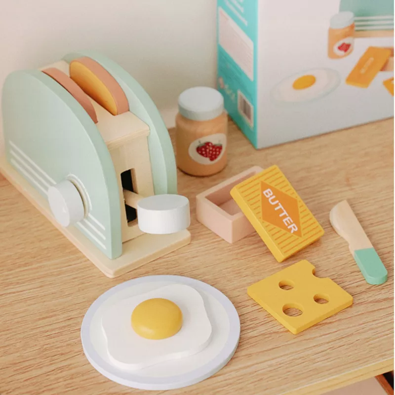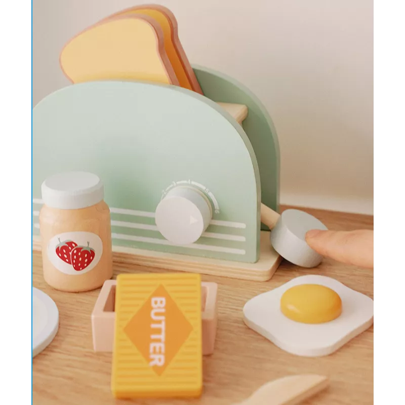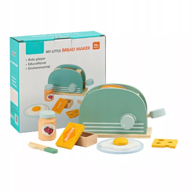 Edukacyjny zestaw drewniany „Śniadanie z Tosterem” to kreatywna zabawka dla dzieci od 3 roku życia, która umożliwia odgrywanie ról i naśladowanie codziennych czynności dorosłych.