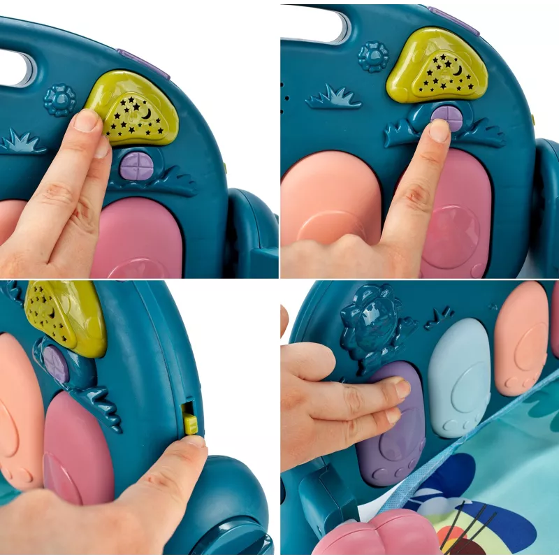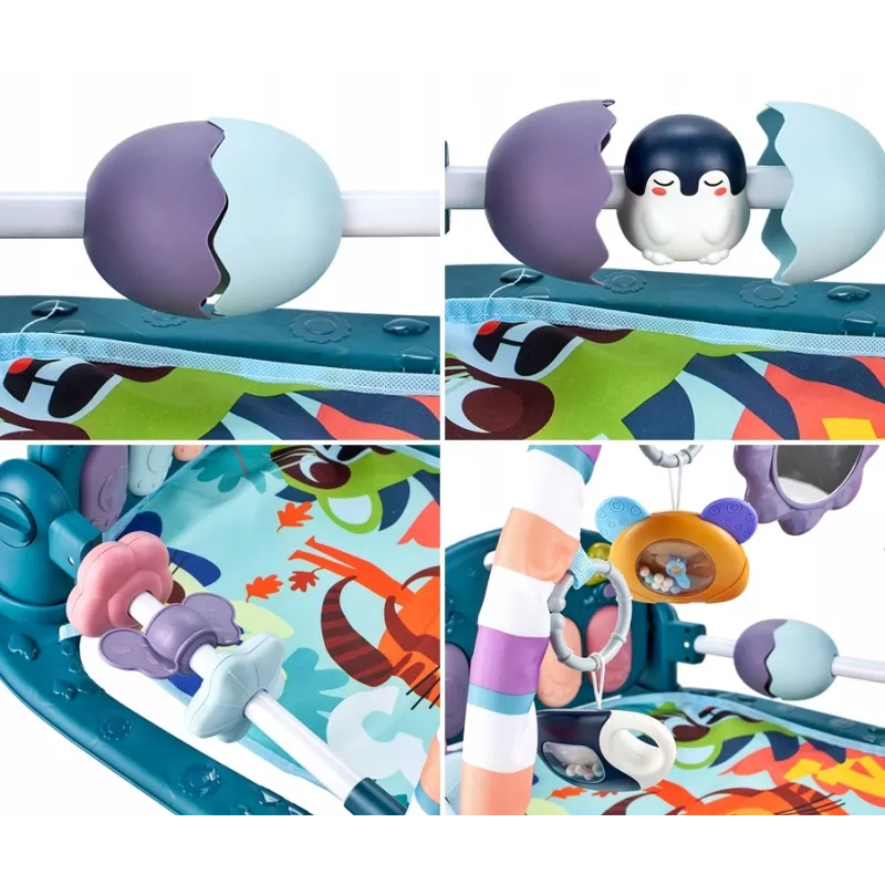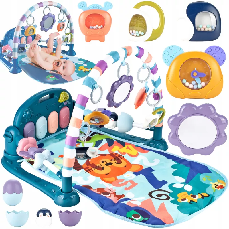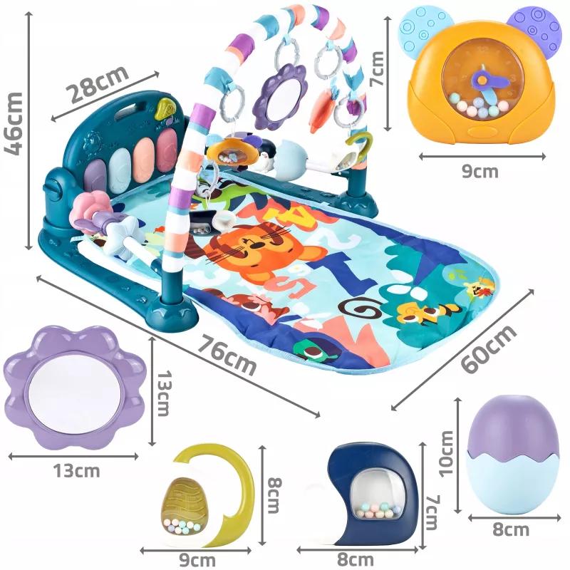 Miękka podstawa, kolorowe zawieszki i pianinko z melodiami pobudzają zmysły, motorykę i ciekawość dziecka już od pierwszych miesięcy życia.