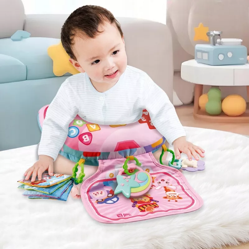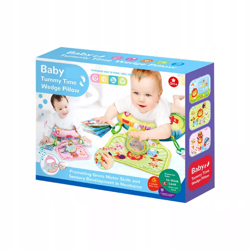 Poduszka edukacyjna dla niemowląt to wielofunkcyjna zabawka sensoryczna, zaprojektowana z myślą o komforcie, bezpieczeństwie i wszechstronnym rozwoju dziecka już od dni życia. Dzięki miękkiej konstrukcji oraz różnorodnym elementom interaktywnym zachęca malucha do leżenia na brzuszku, sięgania, chwytania i odkrywania świata wszystkimi zmysłami.