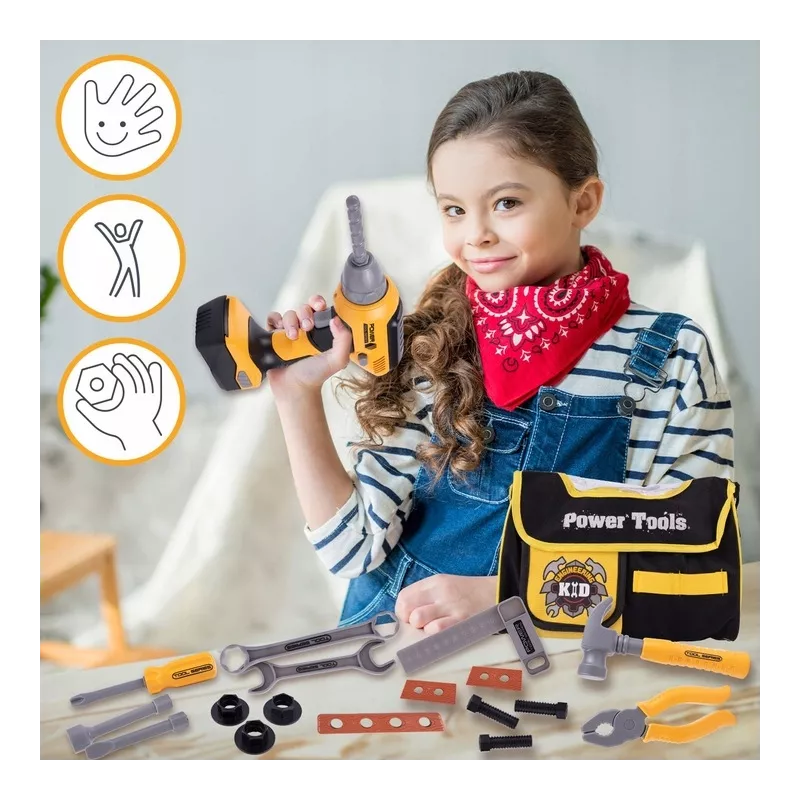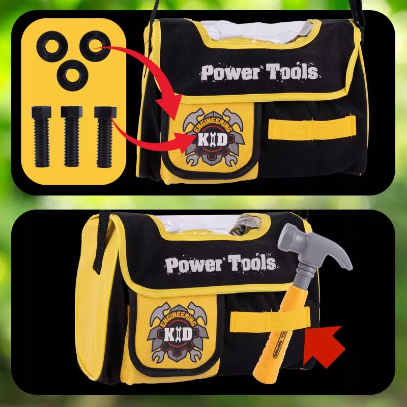 Szukasz zabawki, która połączy świetną zabawę z realnym rozwojem umiejętności Twojego dziecka? Ten kompletny zestaw narzędzi dla dzieci to idealna propozycja dla małych konstruktorów, którzy uwielbiają budować, naprawiać i odkrywać, jak działają różne przedmioty. Wszystkie elementy zostały zaprojektowane tak, aby wyglądały jak prawdziwe narzędzia, jednocześnie zachowując pełne bezpieczeństwo i wygodę użytkowania.