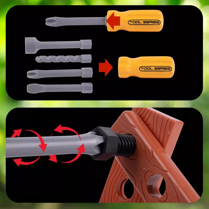 Narzędzia imitują profesjonalne sprzęty, dlatego dziecko może poczuć się jak prawdziwy majster. Uczy się ich zastosowania, poznaje podstawowe techniki i zdobywa praktyczną wiedzę poprzez zabawę.