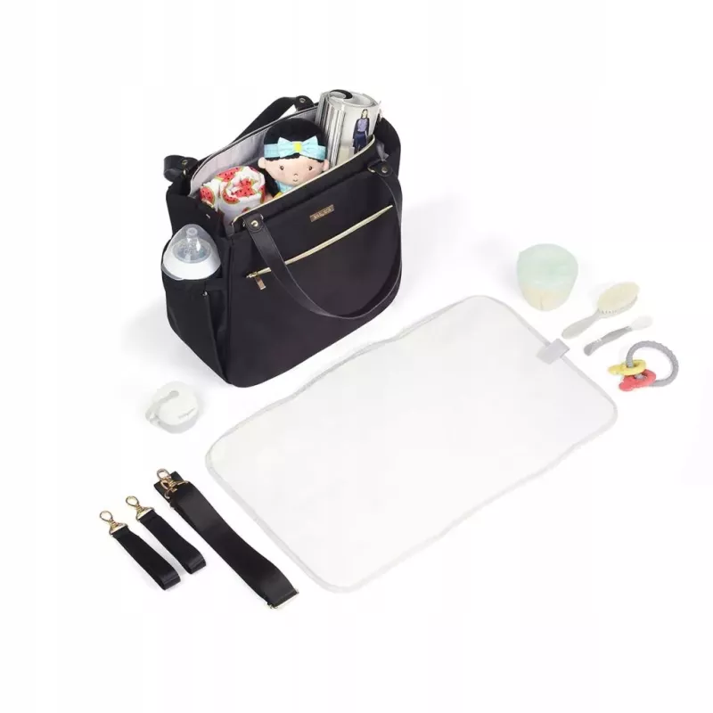 Zawartość zestawu: torba, pasek na ramię, paski do wózka, mata do przewijania