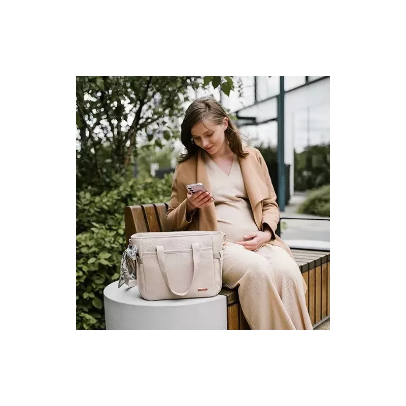 Torba CARMEN BabyOno w kolorze beżowym to niezbędnik każdej mamy, która ceni styl, wygodę i perfekcyjną organizację. ✨
