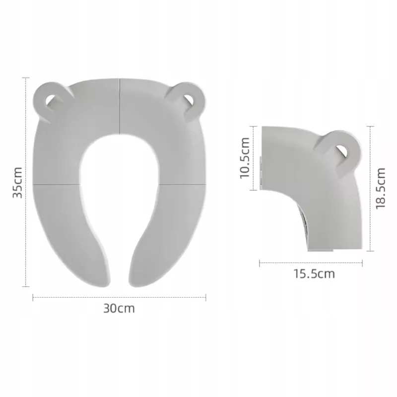 Dzięki swojej lekkiej, składanej konstrukcji nakładka bez problemu mieści się w torbie, plecaku lub wózku. Po rozłożeniu działa jak nakładka na standardową deskę sedesową, pomagając maluchowi czuć się pewniej i bezpieczniej.