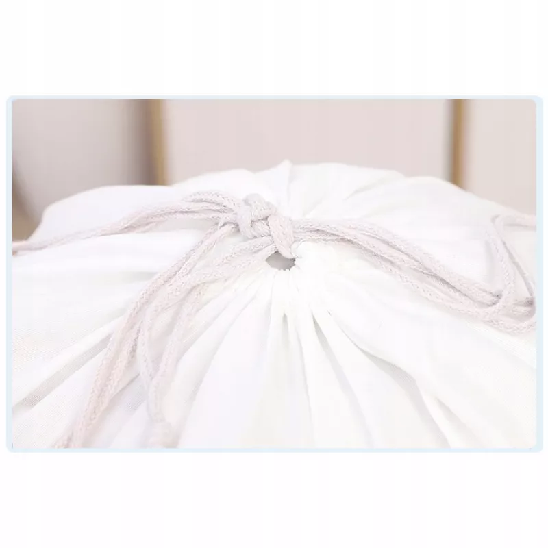 Dzięki praktycznemu zamknięciu na sznurek zawartość pozostaje bezpieczna, a stabilna konstrukcja z wbudowanym drucianym pierścieniem pozwala nawet w pełni załadowanemu koszowi zachować kształt i nie przewracać się. Miękkie, solidne uchwyty umożliwiają wygodne przenoszenie – od pokoju dziecięcego, przez łazienkę, aż po samochód czy plażę.