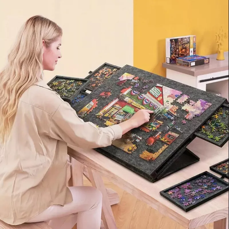 Dzięki funkcjonalnej konstrukcji oraz sześciu pojemnym szufladom każdy puzzel znajdzie swoje miejsce, a układanie stanie się przyjemnością, a nie chaosem.