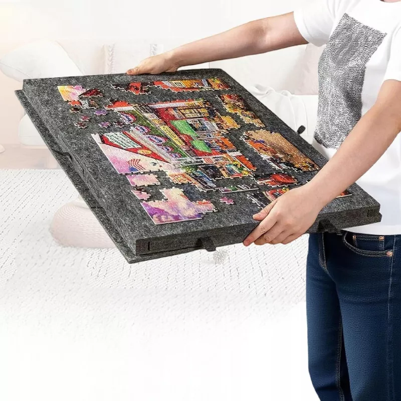 ✅Wygodna duża powierzchnia robocza z filcu, zapobiega przesuwaniu się puzzli