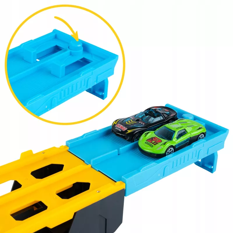Tor zapewnia odpowiednią przestrzeń do rozwijania prędkości, wykonywania skoków i zabawy w wyścigi z przyjaciółmi. To świetna opcja na zabawy konstrukcyjne, dynamiczne zjazdy i testowanie możliwości samochodzików.