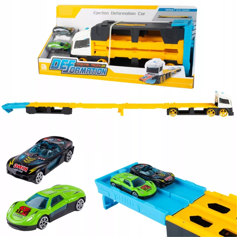 Poznaj niezwykle emocjonującą zabawkę dla małych fanów motoryzacji! Laweta TIR z wyrzutnią aut i długim torem 125 cm to dynamiczny zestaw 2w1, który łączy transport samochodzików z możliwością organizowania ekscytujących wyścigów. To idealny wybór dla dzieci powyżej 3 roku życia, które uwielbiają resoraki, pojazdy ciężarowe oraz zabawę pełną akcji.