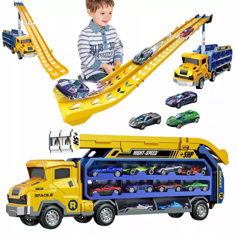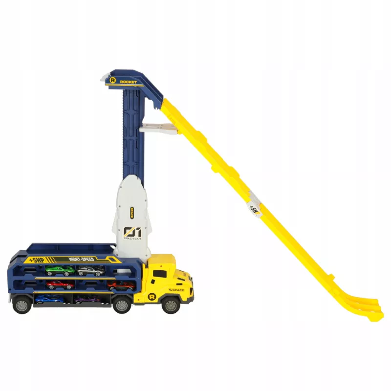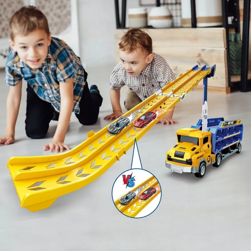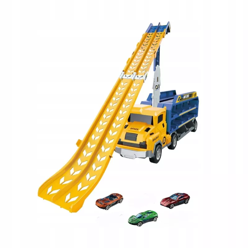 Wyjątkowa ciężarówka transportowa z rozkładanym torem samochodowym to wielofunkcyjna zabawka, która łączy w sobie lawetę, garaż, parking oraz tor wyścigowy. Po rozłożeniu naczepy pojazd zamienia się w imponującą zjeżdżalnię dla samochodzików, zapewniając dziecku długie godziny dynamicznej i kreatywnej zabawy.