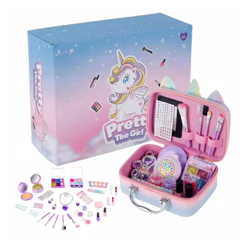 Kuferek jednorożec z makijażem i biżuterią – godziny kreatywnej zabawy w jednym zestawie.