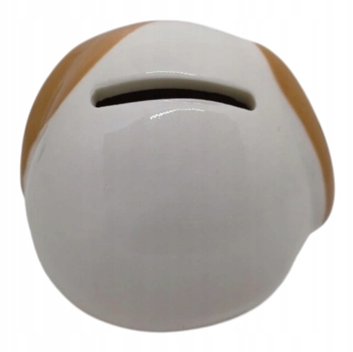 Skarbonka jest otwierana od spodu, dzięki czemu można wygodnie wyjąć zgromadzone pieniądze bez konieczności jej rozbijania.