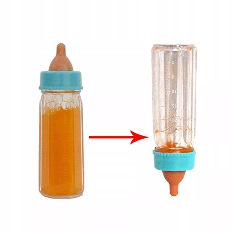 To prosty, ale niezwykle efektowny trik, który zachwyca dzieci i wydłuża czas zabawy. Wystarczy przechylić butelkę, a mleko lub sok zaczną "znikać", dając dziecku wrażenie, że jego lalka naprawdę pije. To magiczny dodatek, który czyni zabawę bardziej autentyczną.