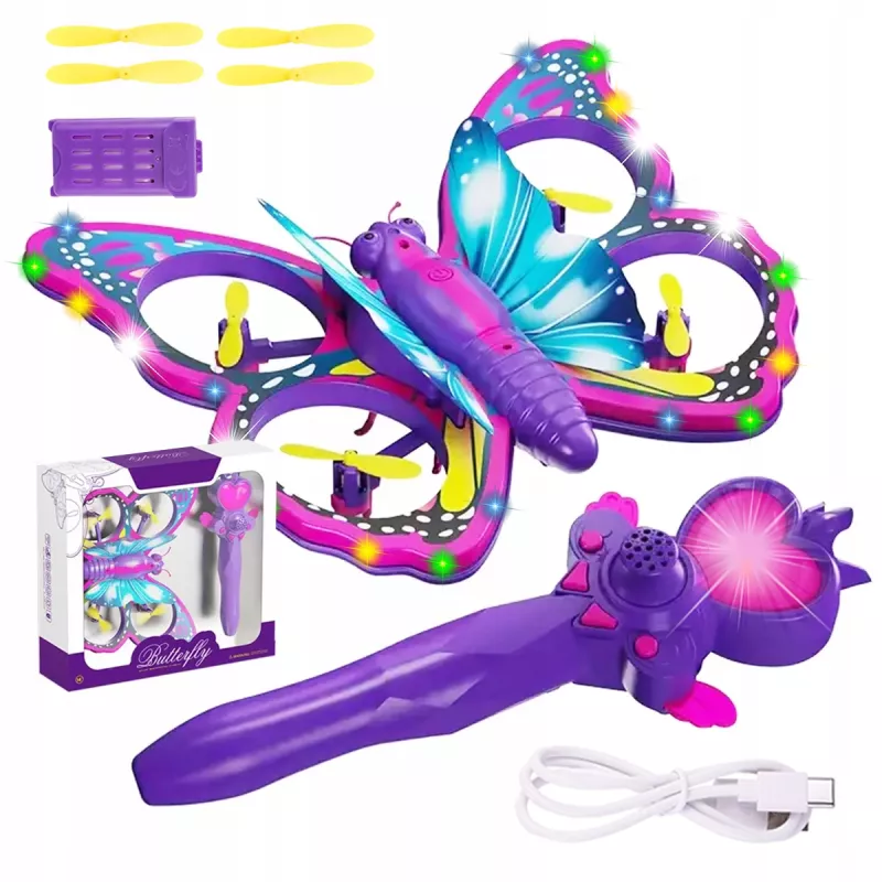 Przenieś zabawę na zupełnie nowy poziom! Ten zdalnie sterowany dron w kształcie motyla łączy technologię RC, efekty świetlne i kreatywną rozrywkę. Dzięki realistycznemu wyglądowi i magicznemu pilotowi w formie różdżki, każde dziecko poczuje się jak w bajce.