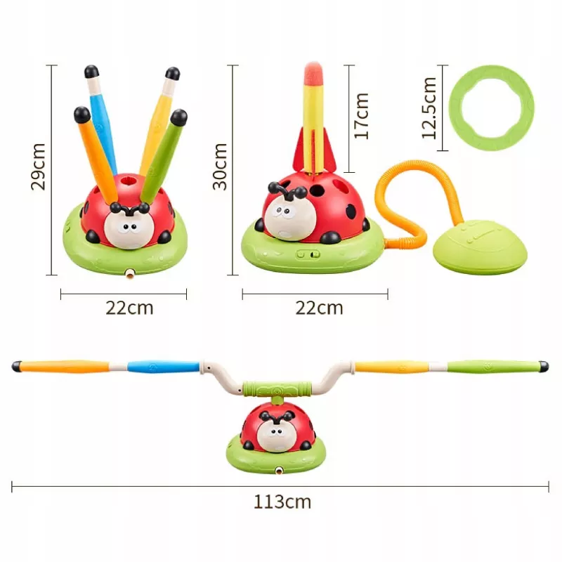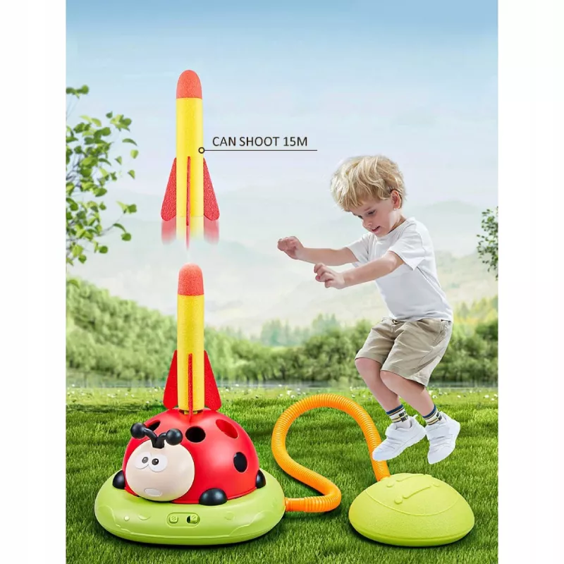 Wystrzel rakietę siłą powietrza, bez użycia baterii! Wystarczy nacisnąć poduszkę, a rakieta poleci nawet na odległość 15 metrów. To doskonała zabawa na świeżym powietrzu, która rozwija siłę nóg i koordynację, dostarczając przy tym ogromnych emocji.
