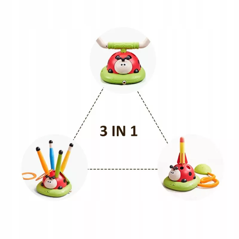 Szukasz zabawki, która oderwie dziecko od ekranu i zapewni mu zdrową, aktywną rozrywkę? Ten wielofunkcyjny zestaw łączy aż trzy różne aktywności, które rozwijają sprawność fizyczną i gwarantują mnóstwo radości w domu i na świeżym powietrzu.