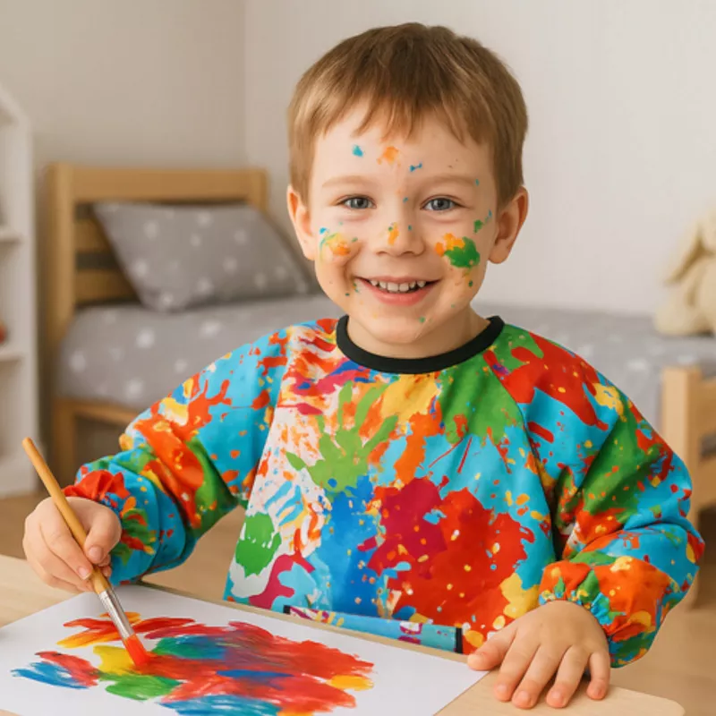 ✅ Skuteczna ochrona ubrań – wodoodporny materiał chroni przed farbą, klejem, tuszem i jedzeniem.