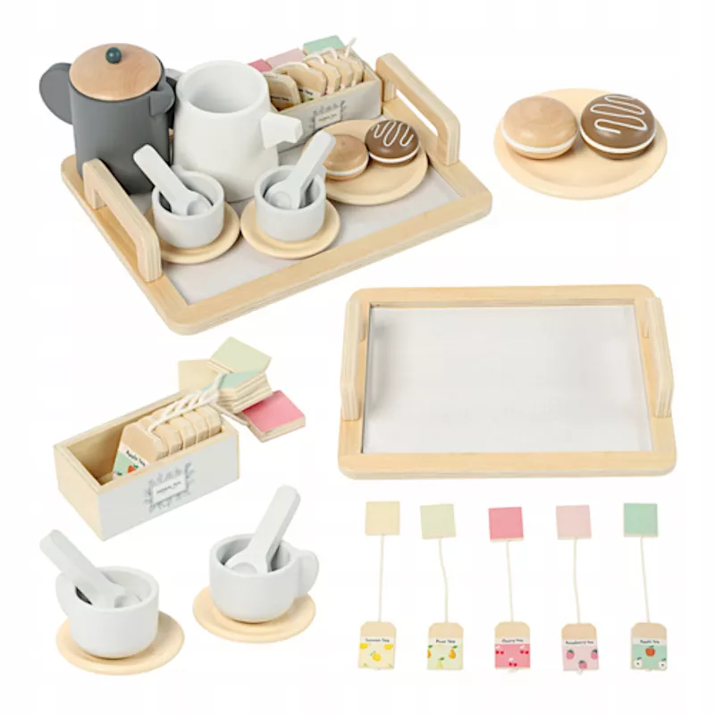 Drewniany Zestaw do Herbaty dla Dzieci to edukacyjna i stylowa zabawka, która przenosi maluchy w świat domowych przyjęć, kawiarenek, odgrywania ról i kreatywnych scenek.