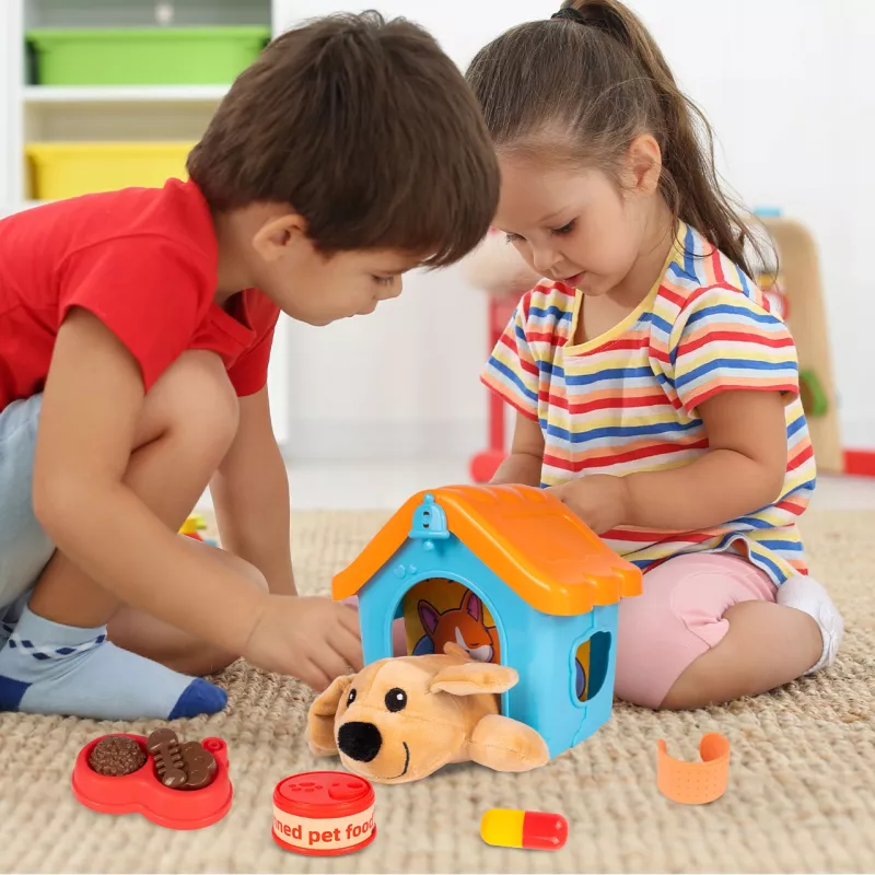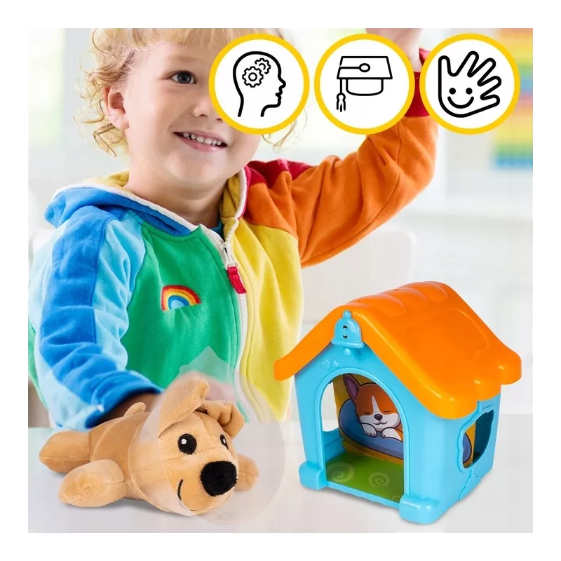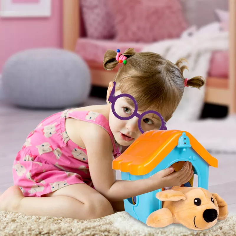 Dzięki misce i „porcji jedzonka” dziecko uczy się codziennych rytuałów opieki: karmienia, pielęgnacji, usypiania i dbania o komfort zwierzaka. Piesek i buda tworzą realistyczną bazę zabawy, którą łatwo przenieść w inne miejsce.
