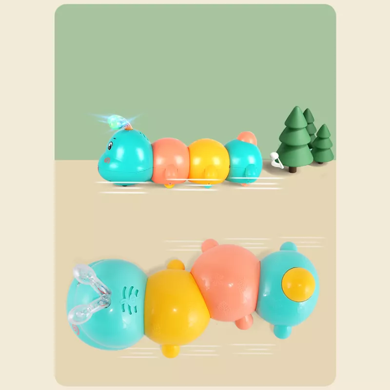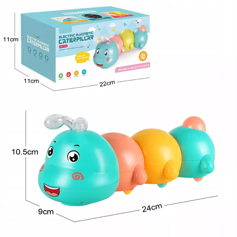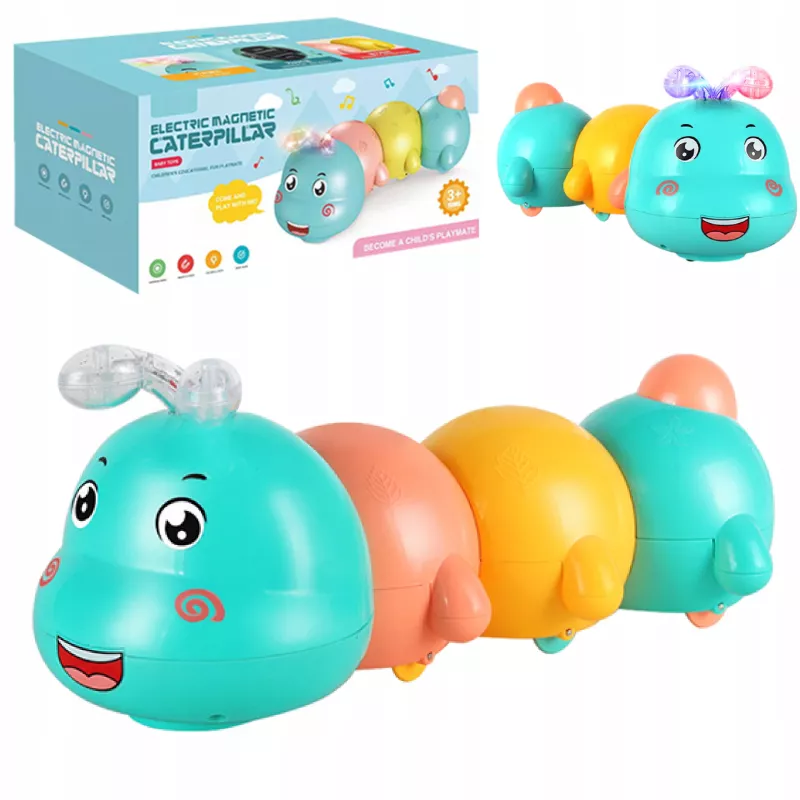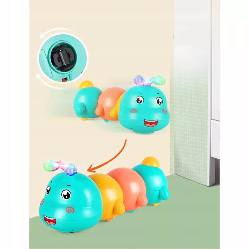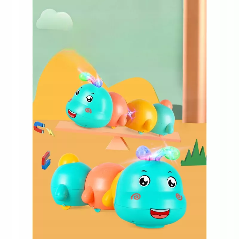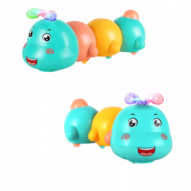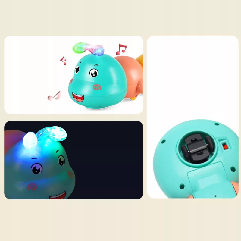 ✅Stymulacja raczkowania – poruszająca się gąsienica oraz odbijająca się od krawędzi motywuje dziecko do podążania za nią, wzmacniając mięśnie i koordynację ruchową