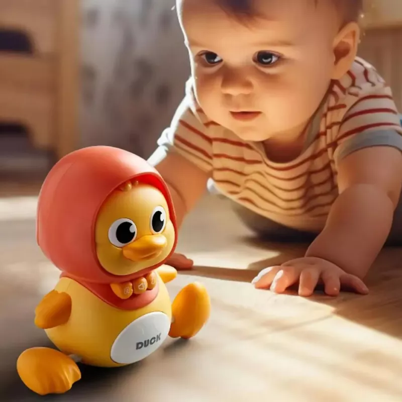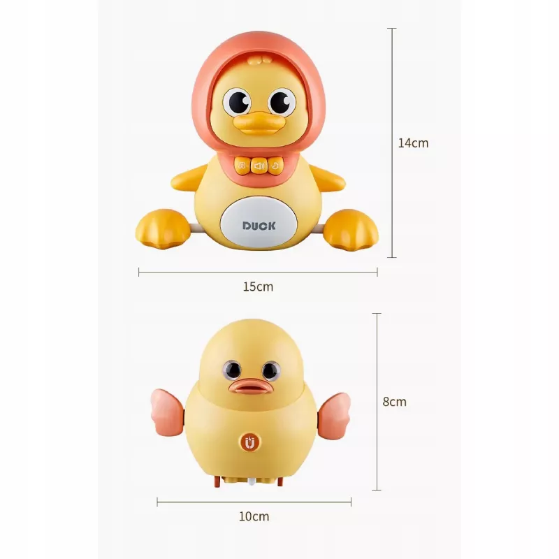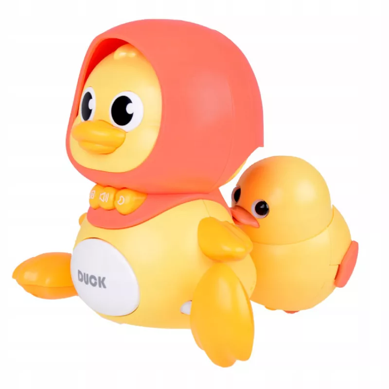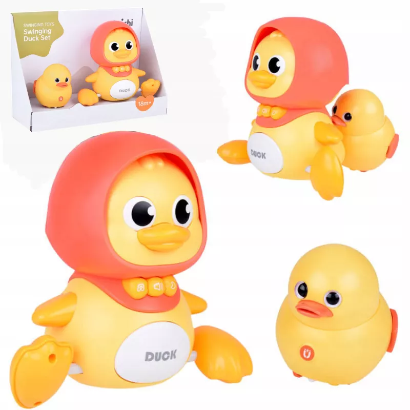 Zestaw zawiera jedną dużą kaczuszkę – mamę i małe kaczątko. Dzięki muzyce, efektom świetlnym i różnym trybom zabawy, kaczuszka wspiera rozwój dziecka, zachęca do raczkowania i aktywności ruchowej, jednocześnie dostarczając mnóstwo radości.