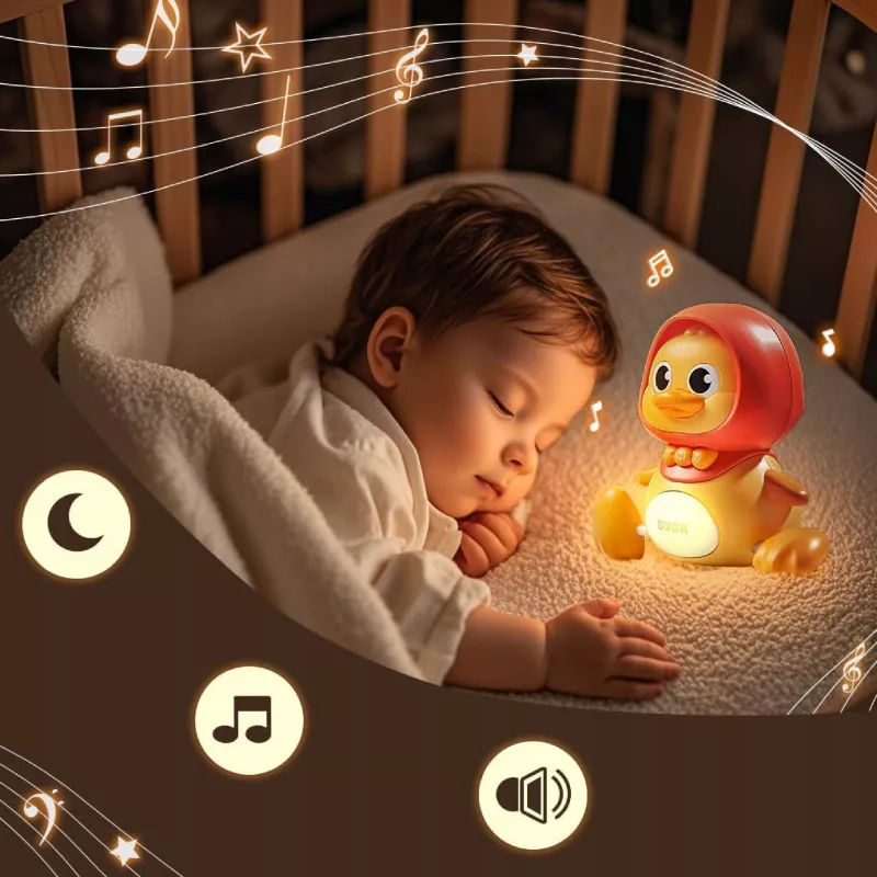 ✅Muzyka i kołysanki: Wbudowane melodie oraz funkcja delikatnego światła sprawiają, że zabawka jest zarówno interaktywna, jak i relaksująca – idealna do zabawy w ciągu dnia oraz do uspokajania malucha przed snem.
