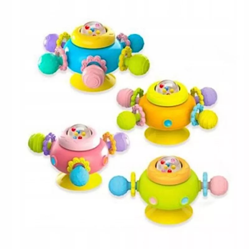 Cztery różne spinnery, które można przyssać w pionie lub poziomie – do wanny, stolika, szyby w samochodzie albo lodówki.