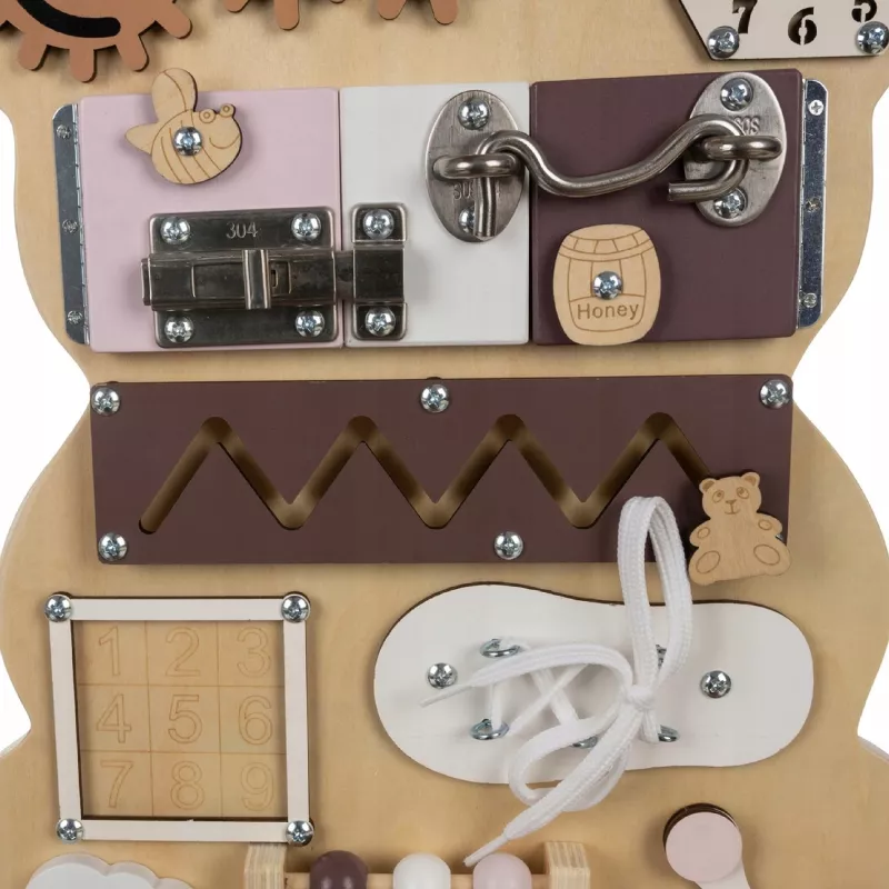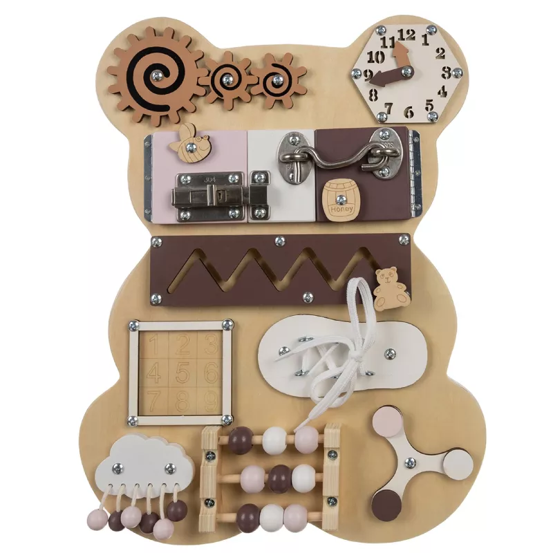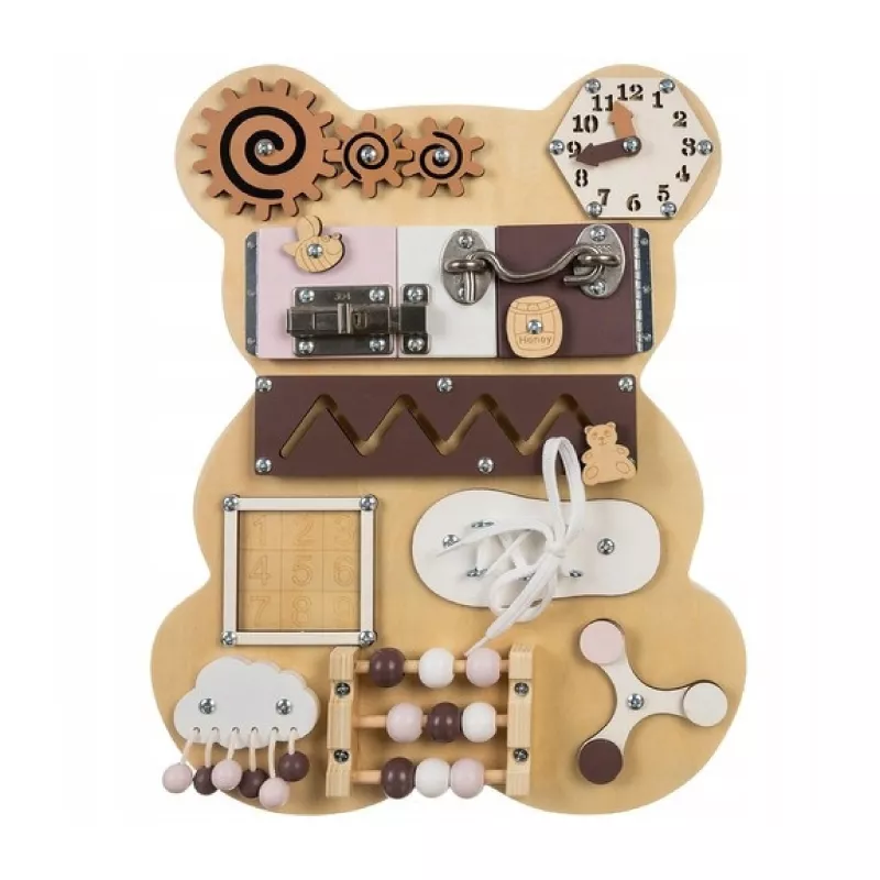 Poznaj tablicę manipulacyjną w kształcie uroczego misia – idealną zabawkę edukacyjną, która wspiera rozwój sensoryczny, motoryczny i poznawczy Twojego dziecka. To bezpieczne, atrakcyjne wizualnie i bogate w elementy narzędzie, które pomaga najmłodszym poznawać świat poprzez dotyk, ruch i obserwację.