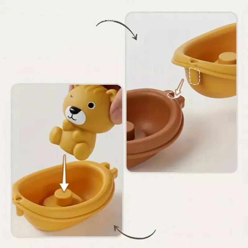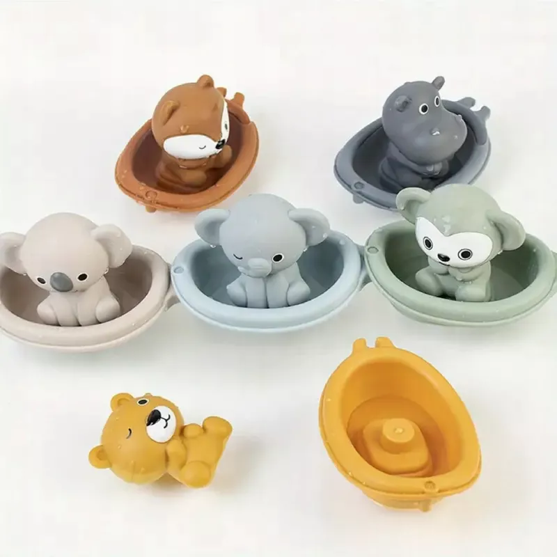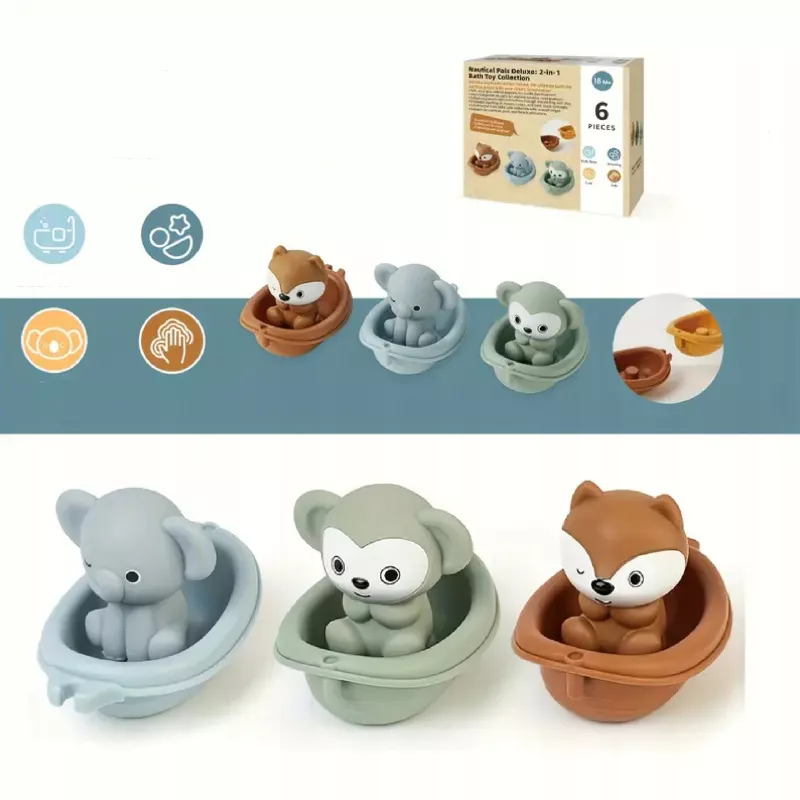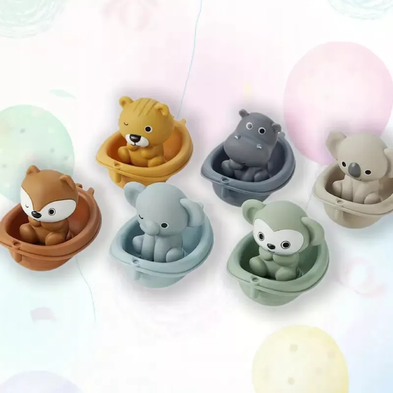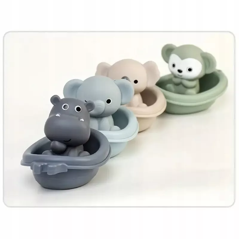 Koala, lisek, hipopotam, tygrys, słonik, miś i inne urocze zwierzaki – każde w swojej mini „łodzi”, która również pływa po wodzie