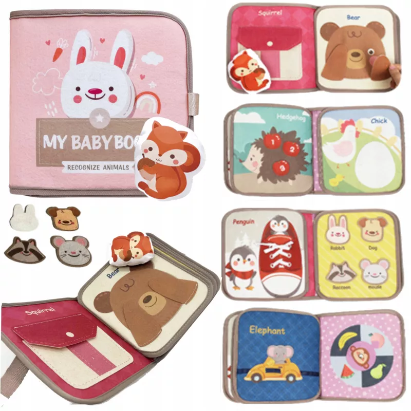 Książeczka filcowa dla dzieci tablica manipulacyjna rzepy Montessori