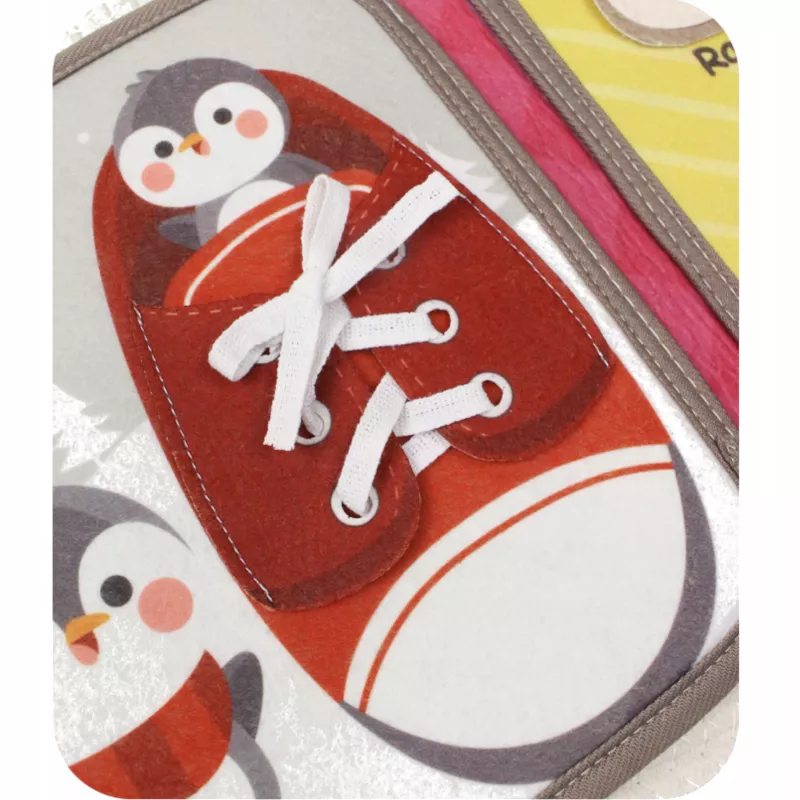 Cicha książeczka sensoryczna filcowa to edukacyjna zabawka stworzona z myślą o dzieciach w wieku od 0–24 miesięcy. Zaprojektowana w oparciu o aktywności rozwijające umiejętności życiowe, wspiera rozwój motoryki małej, koordynacji wzrokowo–ruchowej oraz samodzielności już od pierwszych lat życia.