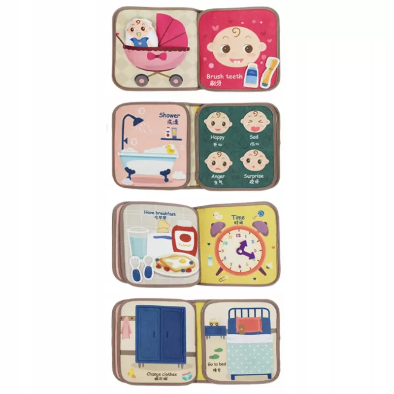 Cicha książeczka sensoryczna filcowa to edukacyjna zabawka stworzona z myślą o dzieciach w wieku od 0–24 miesięcy. Zaprojektowana w oparciu o aktywności rozwijające umiejętności życiowe, wspiera rozwój motoryki małej, koordynacji wzrokowo–ruchowej oraz samodzielności już od pierwszych lat życia.