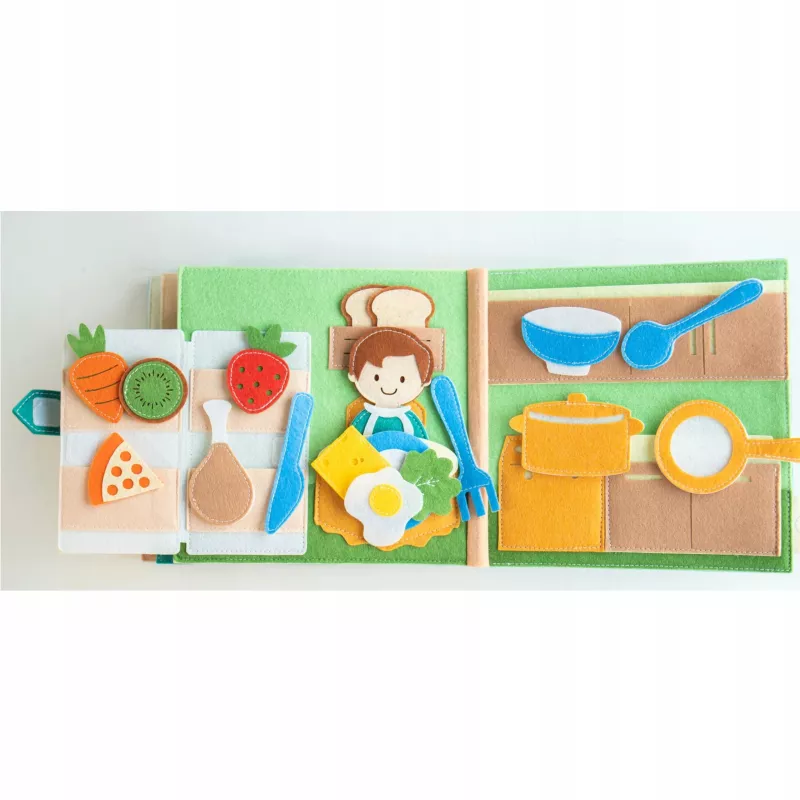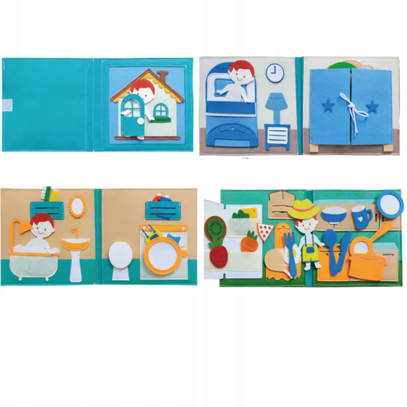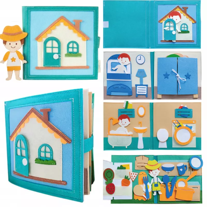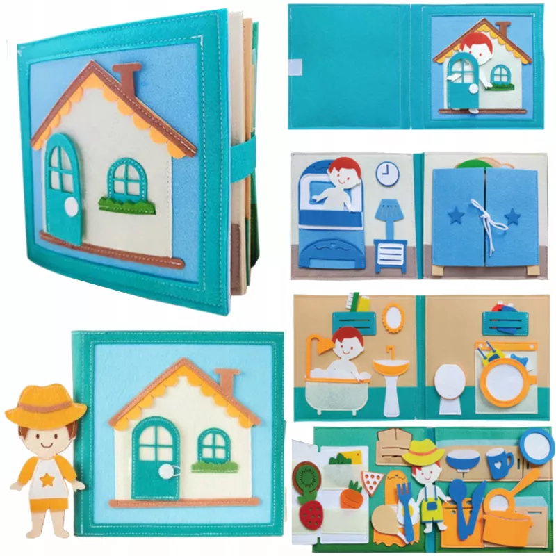 Kolorowa cicha książeczka sensoryczna filcowa z motywem domu to kreatywna i rozwijająca zabawka edukacyjna dla dzieci. Zaprojektowana tak, aby wspierać rozwój motoryki małej, logicznego myślenia oraz samodzielności poprzez zabawę.