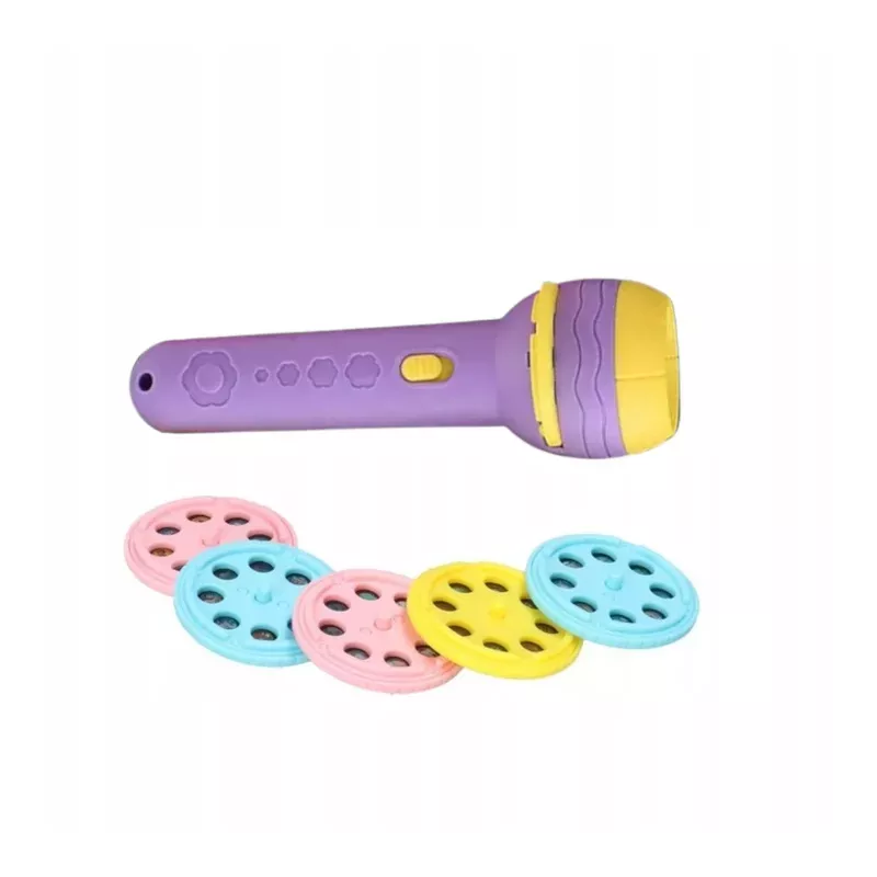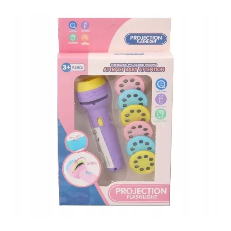 W zestawie: projektor-latarka, 6 krążków, baterie LR44, kolorowe opakowanie