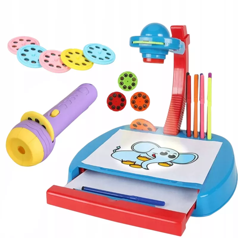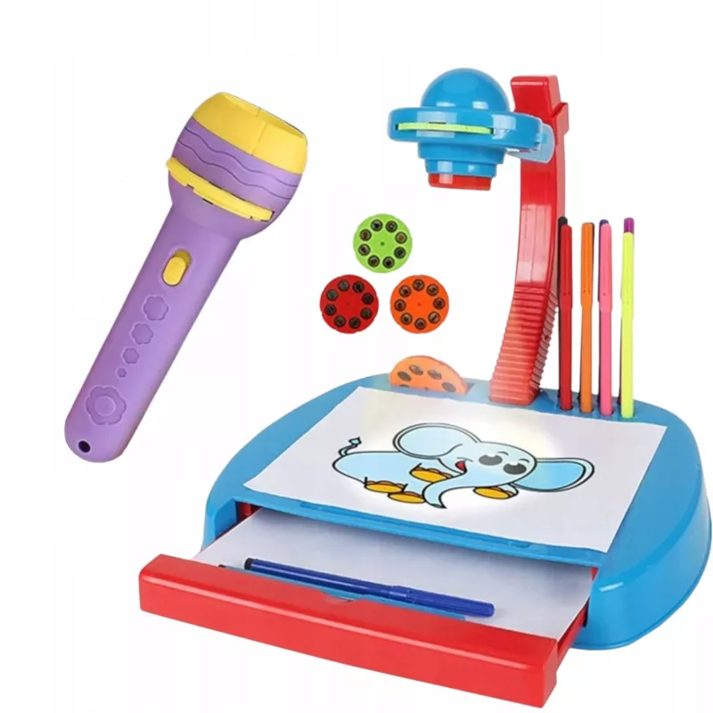 Projektor ręczny 2w1 (latarka + slajdy) + Projektor do rysowania z tablicą i szufladą