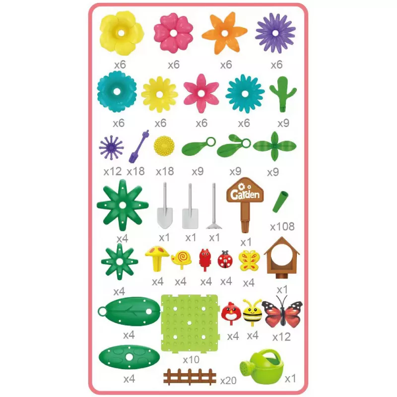 Klocki Konstrukcyjne Ogród Kwiatki to rozbudowany zestaw edukacyjny, który łączy kreatywną zabawę z nauką poprzez działanie. Dzięki aż 332 elementom dziecko może samodzielnie tworzyć kolorowe kompozycje kwiatowe, rozwijając wyobraźnię przestrzenną, zdolności manualne oraz logiczne myślenie. To idealna propozycja zarówno do zabawy indywidualnej, jak i wspólnego spędzania czasu z rodziną.